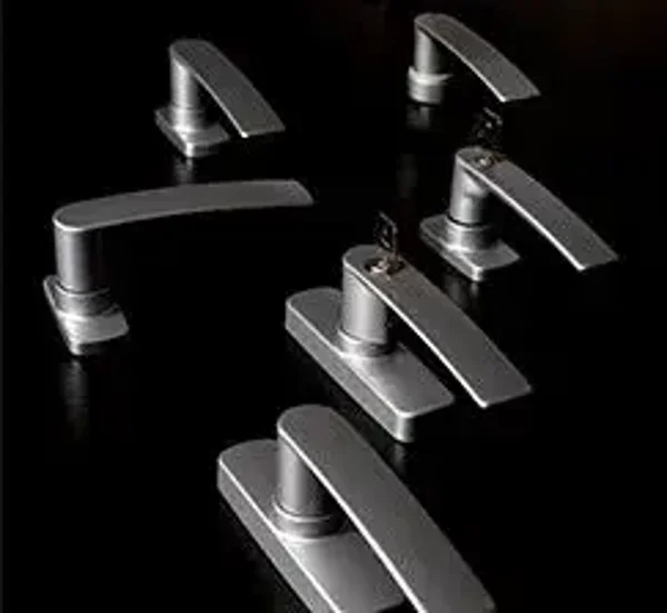 Cremona de una pala, completamente de aluminio fundido a presión y lacada. Realizada en dos modelos diferentes para la posición de los tornillos de anclaje. Cuerpo y mango de aluminio fundido a presión, piñón y muelle de acero cincado, cremallera de acero inox, placa inferior de nylon. Contraplacas autobloqueantes y tornillos de acero inox.